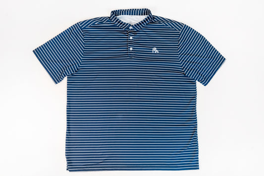 Men's Navy Blue Golf Polo Short Sleeve Shirt White Striped Performance Moisture Wicking Dry Fit Golf Shirt